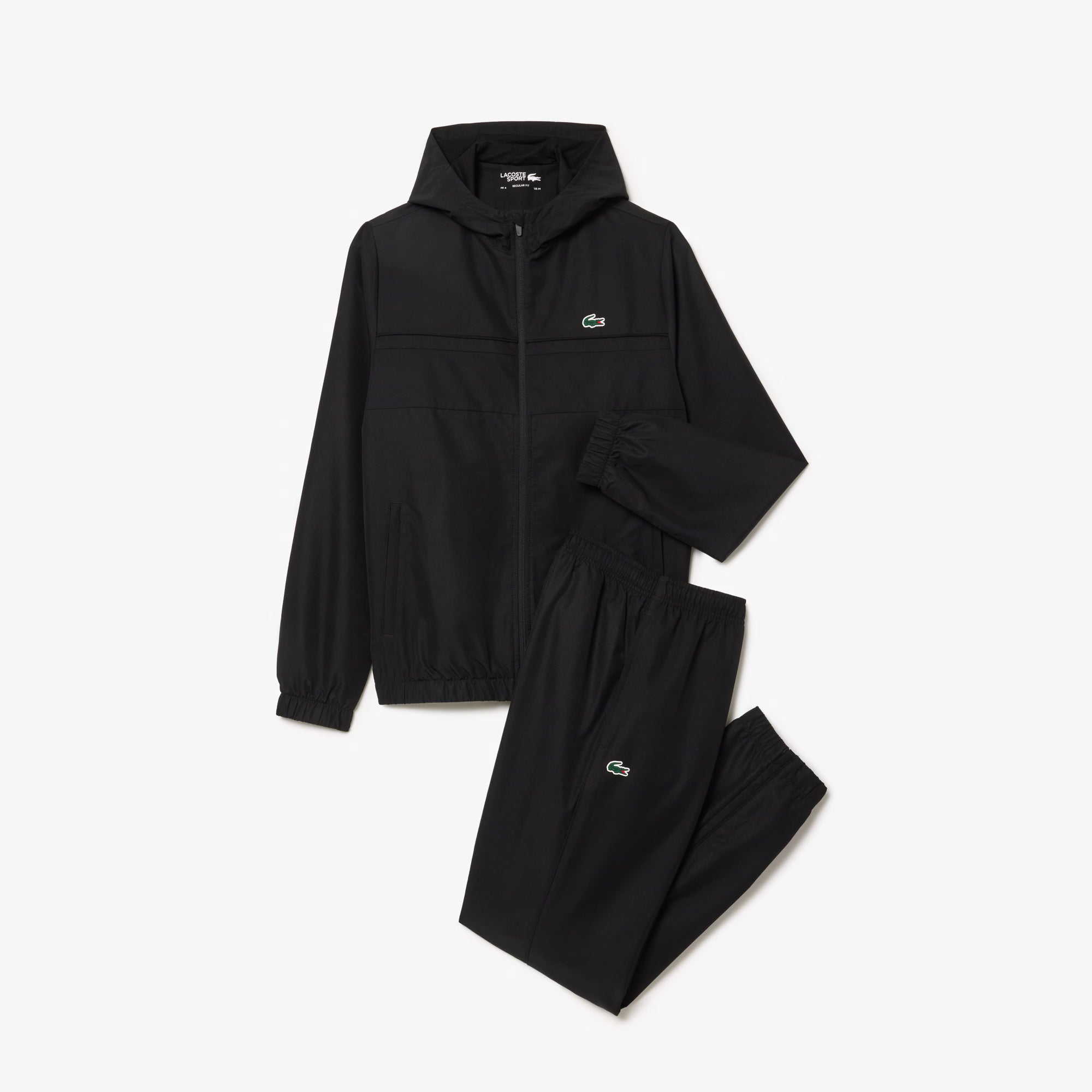 La tuta ideale per qualsiasi sport. Presenta una giacca con cappuccio e pantaloni monocromatici, fatti per muoversi con te nel nostro iconico taffetà leggero e traspirante. Dettagli di finitura sofisticati aggiungono un tocco elegante a un design essenziale.