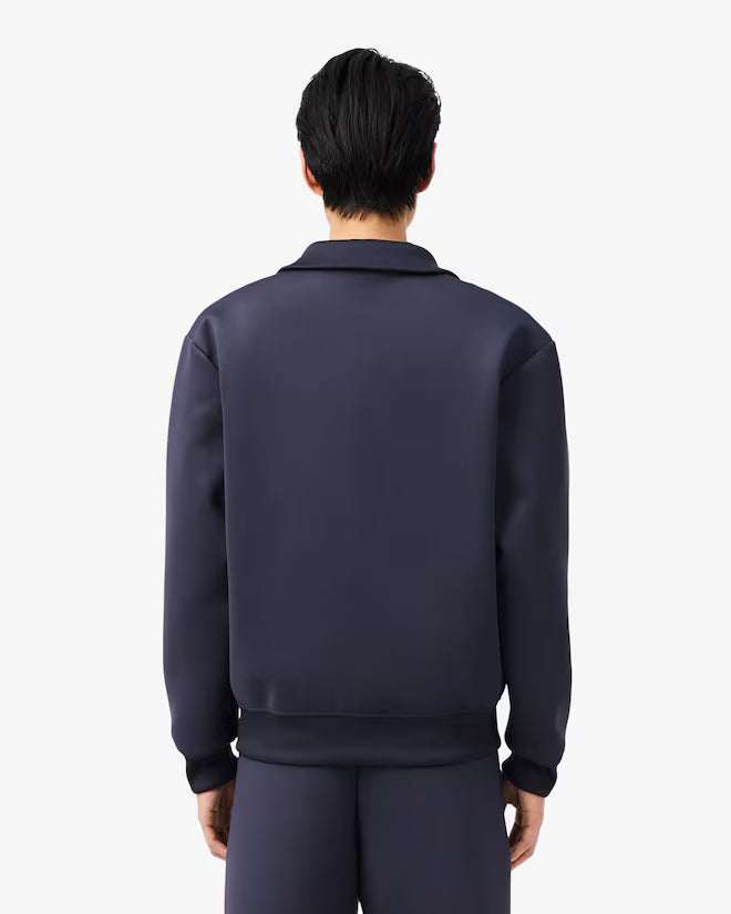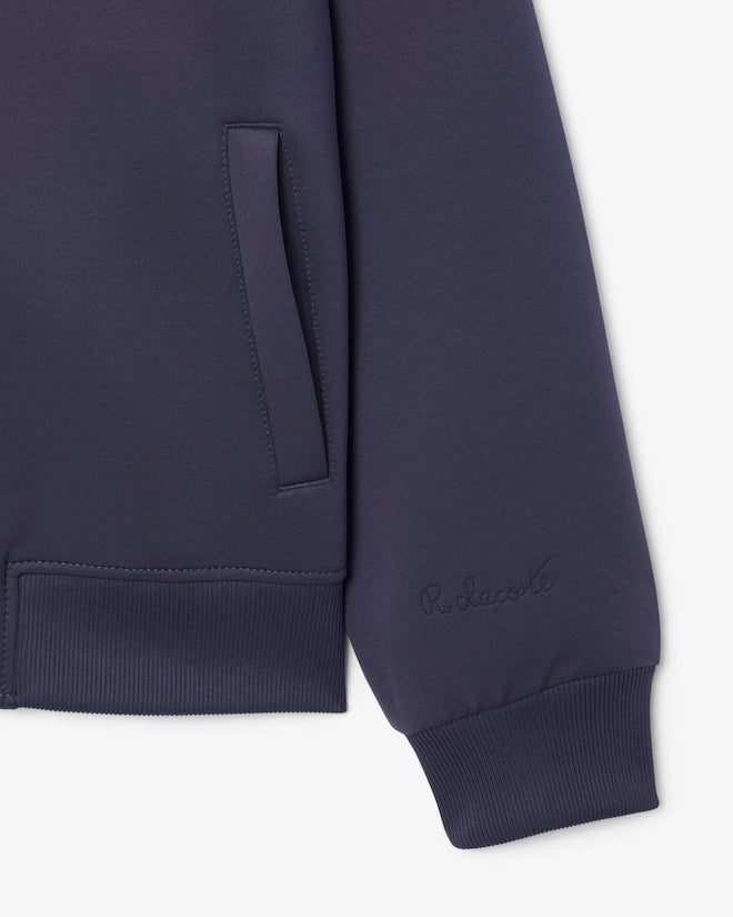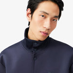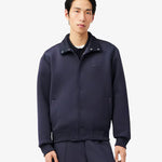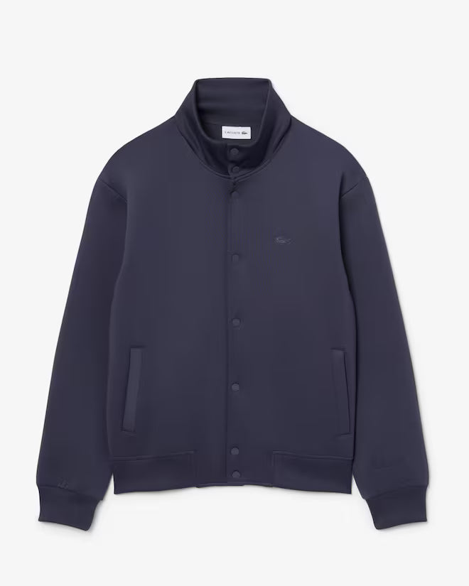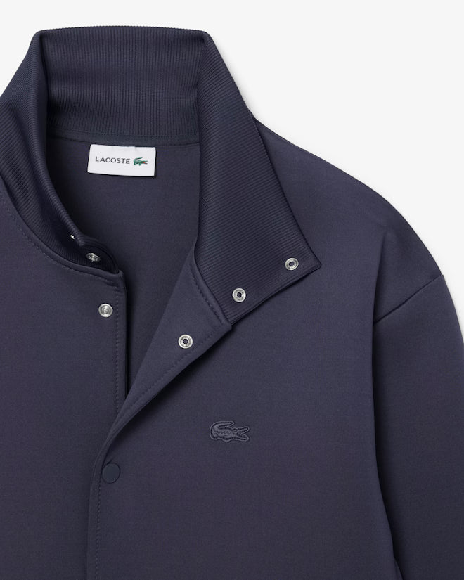 Questa giacca è una grande dimostrazione dell'eleganza francese di Lacoste. Uno stile elegante in comodo tessuto a maglia double face, con collo alto a coste, bottoni in metallo e una discreta firma di René Lacoste ricamata. Un design sofisticato, rifinito con un coccodrillo tono su tono.