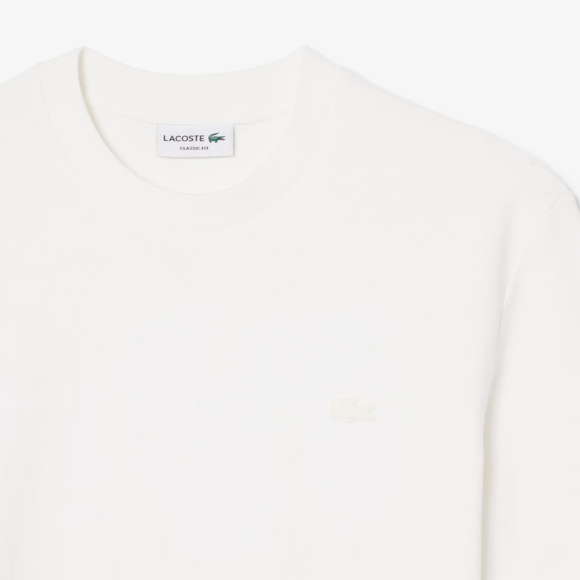 Una t-shirt ricca di dettagli eleganti e all'avanguardia firmati Lacoste, creatori di sportswear dal 1933. Uno stile elegante in morbido e confortevole jersey testurizzato, rifinito con un caratteristico coccodrillo ricamato. Il massimo del casual chic.