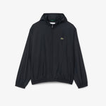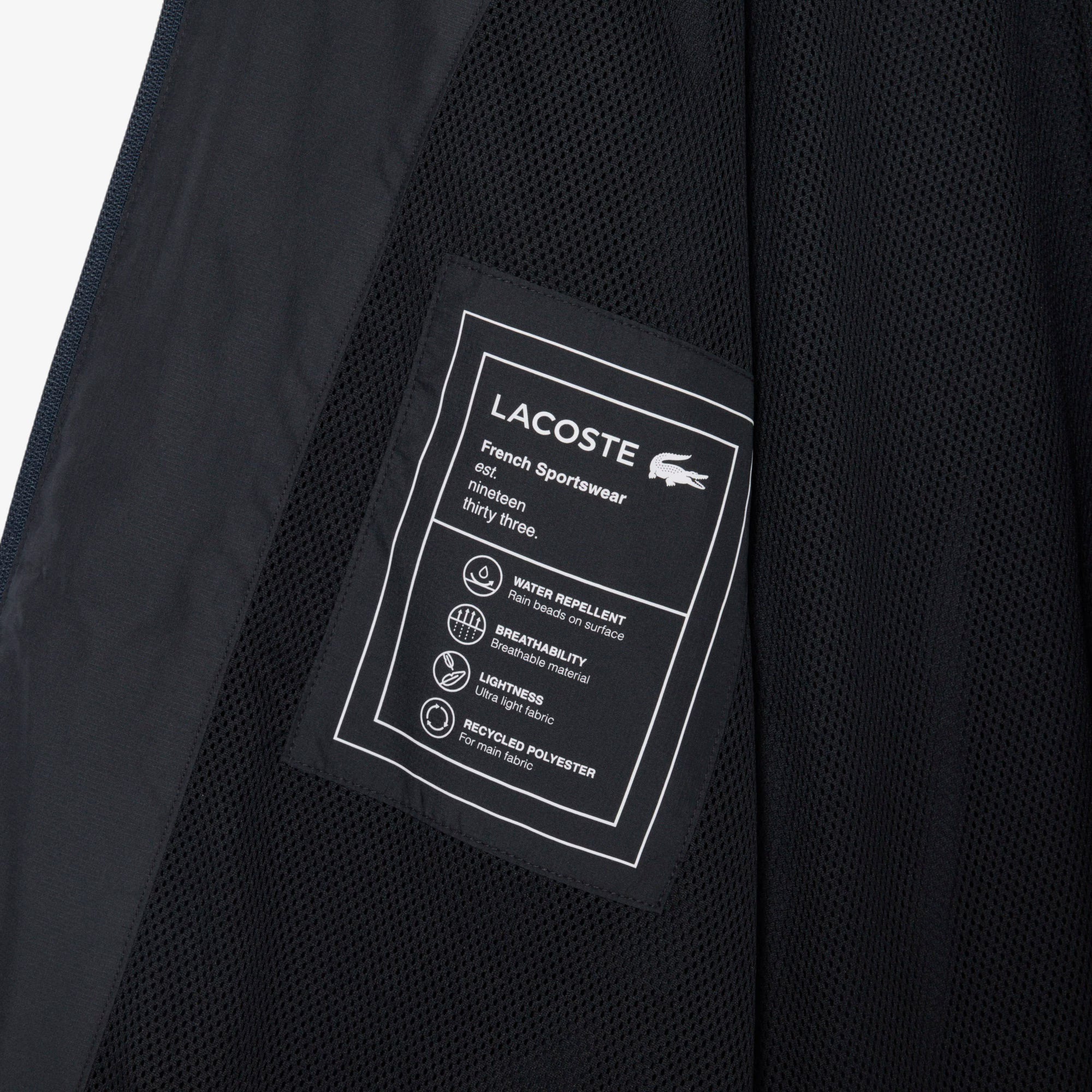 Lacoste rivisita la giacca essenziale con una competenza tecnica unica. Questo modello in leggero taffetà unisce comfort e protezione grazie al cappuccio a scomparsa, alla fodera in mesh traspirante e alla minuziosa finitura. Un essenziale funzionale.
