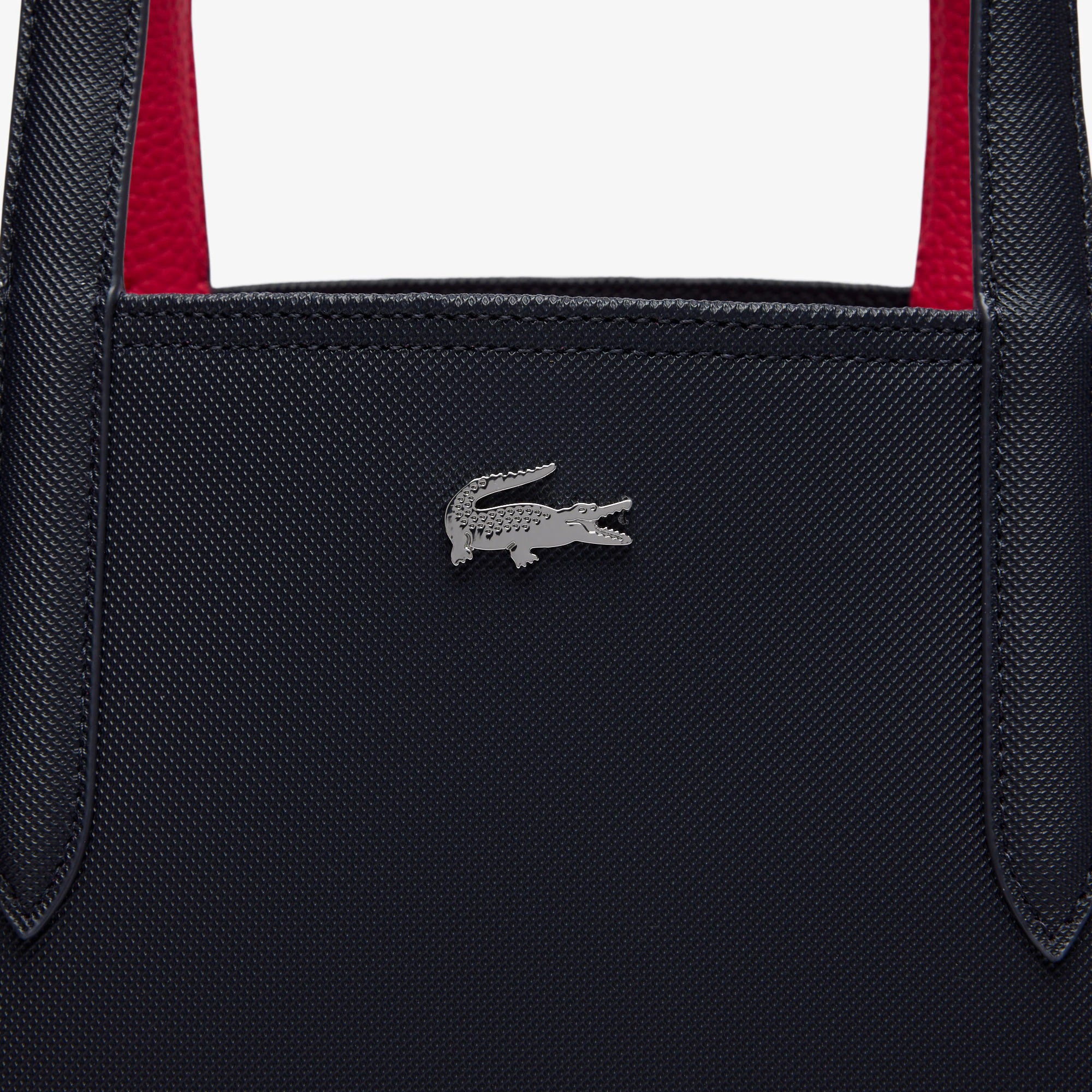 This reversible bag features two contrasting colors. Quite large and with a removable pocket, the bag features a coarse grain effect on one side and a raised piqué effect on the other.