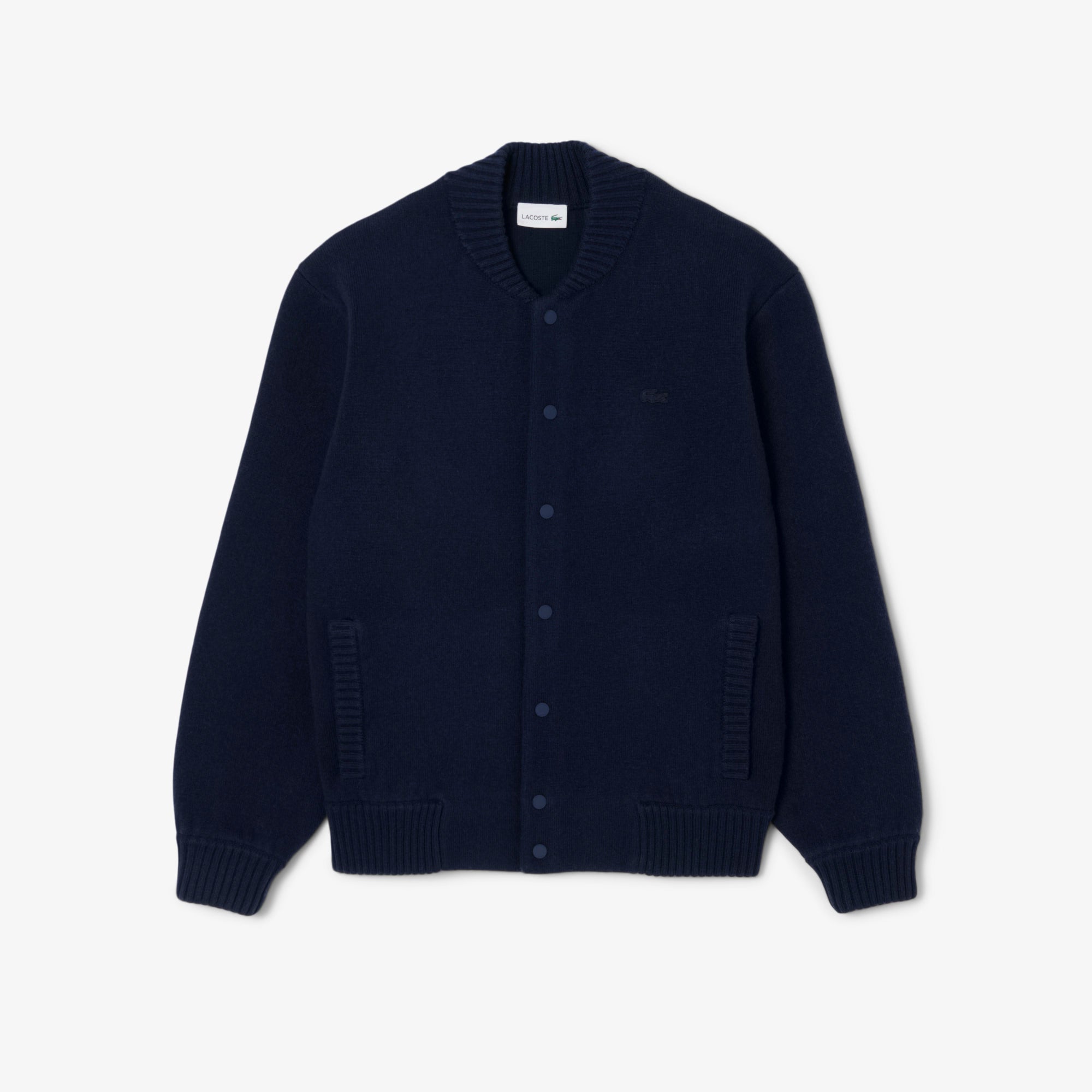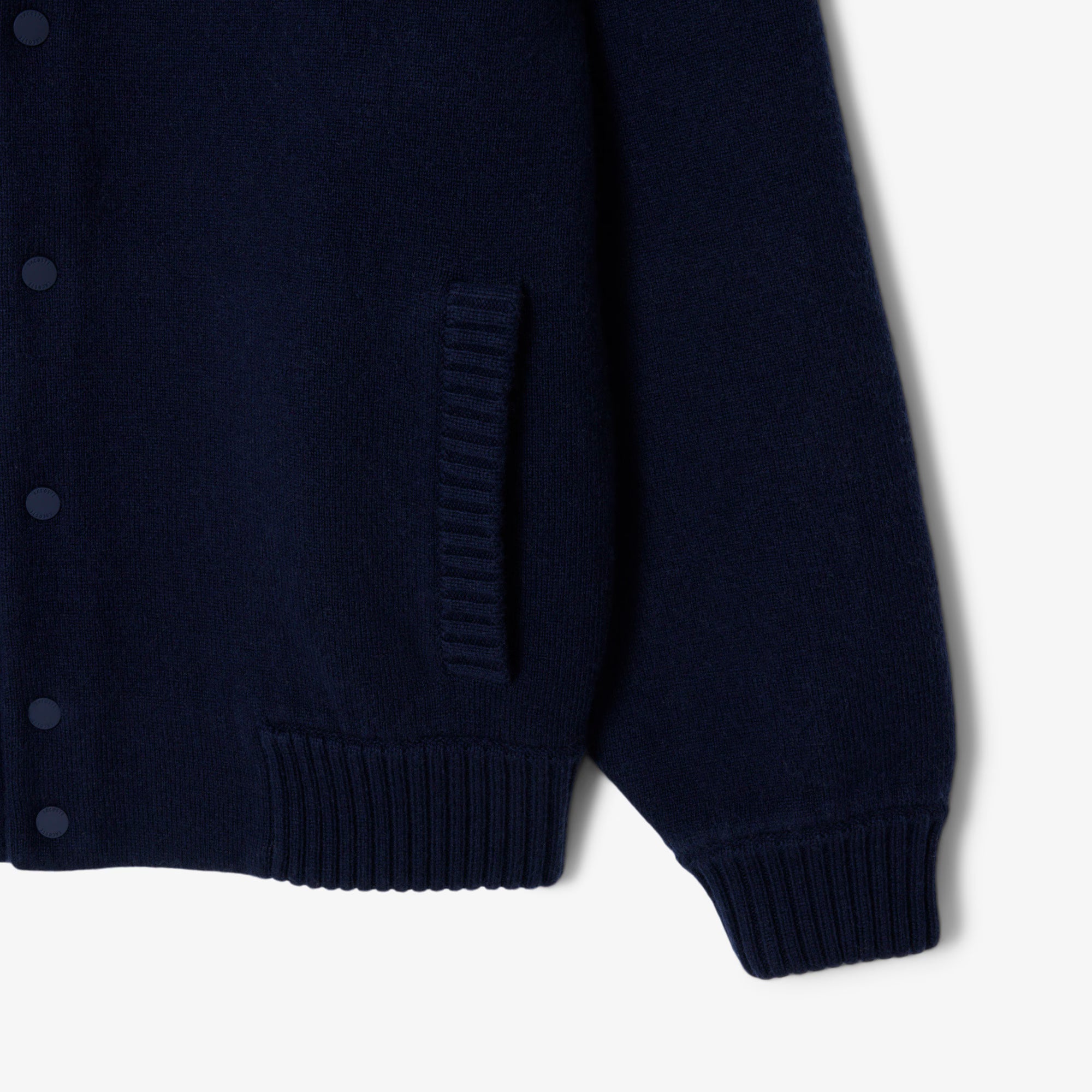 Questo cardigan è realizzato in morbida, spessa e confortevole lana merinos, dona un guizzo unico al classico taglio bomber. Un capo sofisticato con dettagli a coste e un tradizionale coccodrillo ricamato.