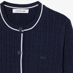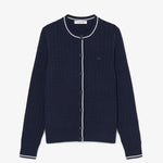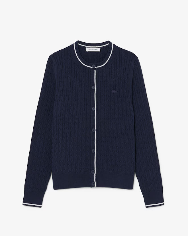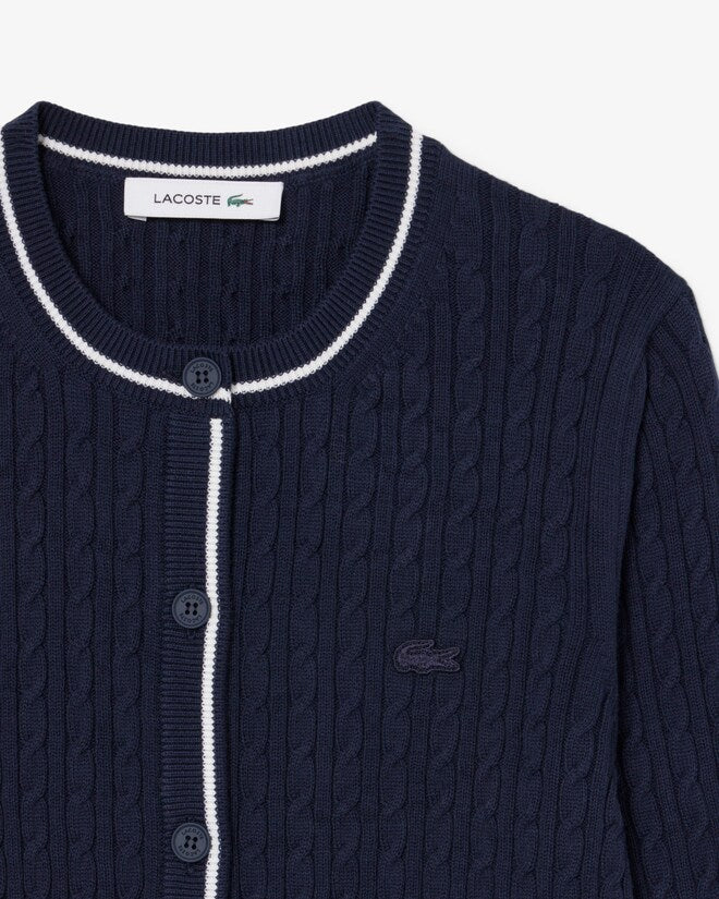 Questo cardigan è il frutto di 90 anni di eleganza e competenza Lacoste. Un sofisticato stile heritage in morbido cotone lavorato a trecce, con dettagli a coste caratterizzati da una elegante riga a contrasto. Uno stile sofisticato, rifinito con il tradizionale coccodrillo ricamato.