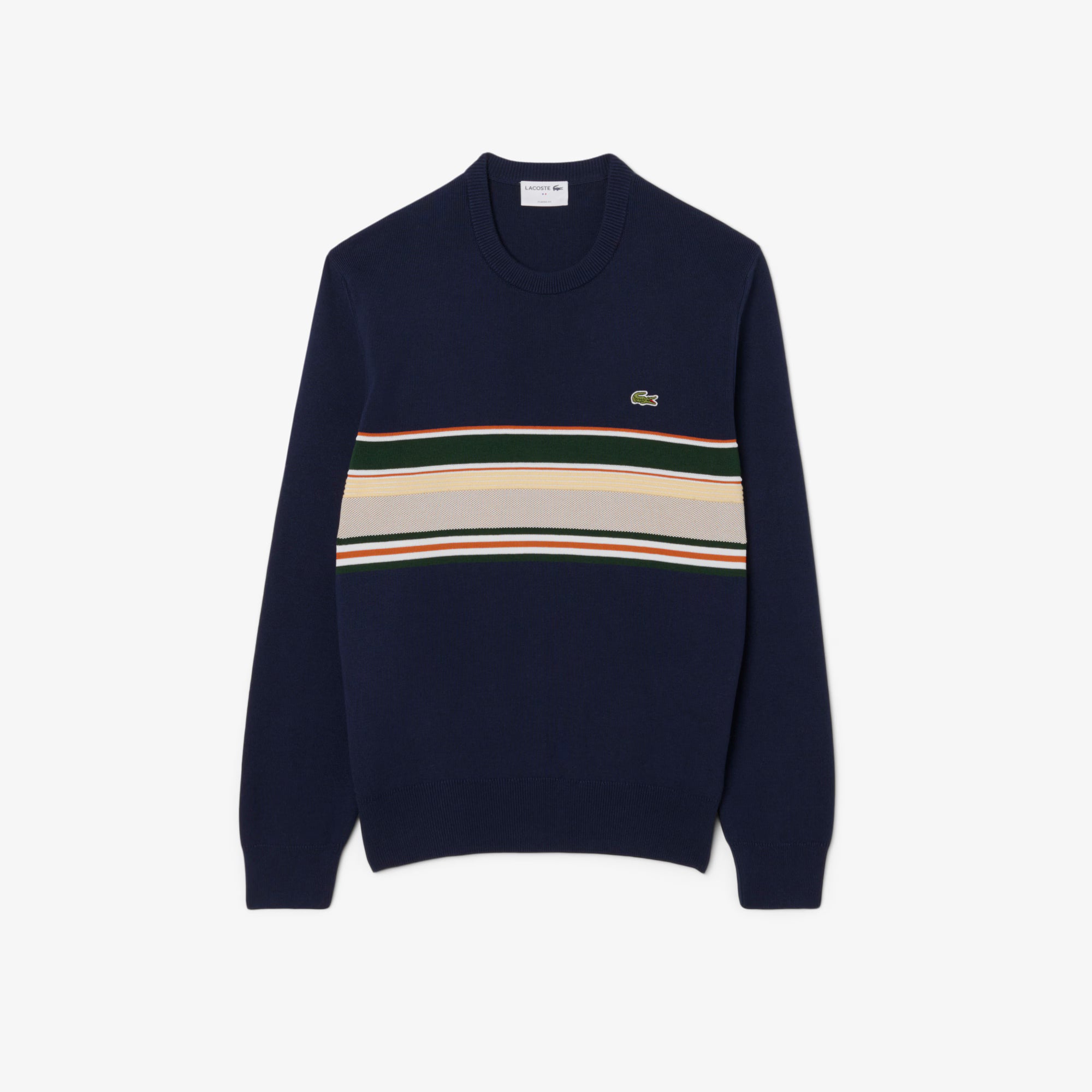 Questo maglione è il frutto di 90 anni di esperienza nell'eleganza e nella maglieria Lacoste. Realizzato negli storici stabilimenti Lacoste di Troyes, in Francia, è caratterizzato da strisce centrali a contrasto, create con sottili dettagli a maglia per un sofisticato effetto testurizzato. Un must con dettagli di finitura a coste e un tradizionale coccodrillo ricamato.