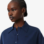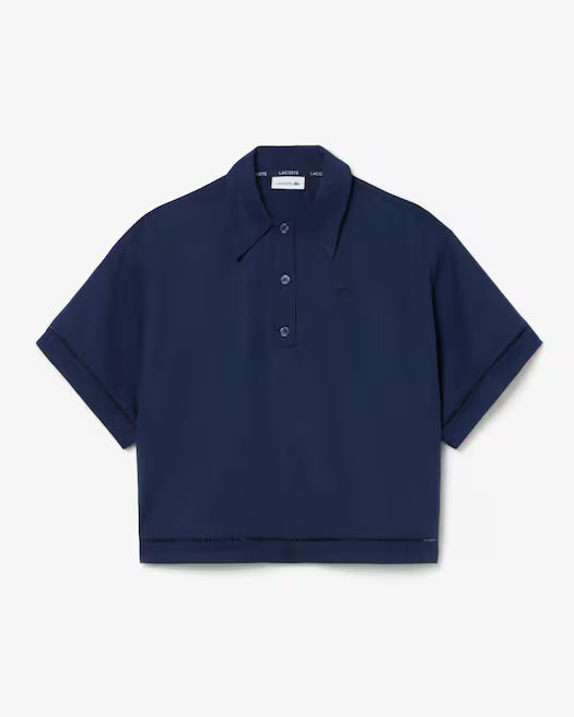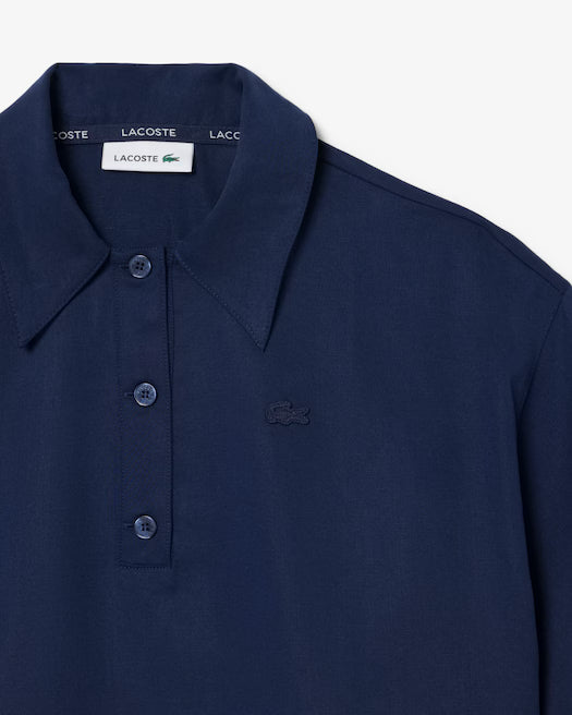 Una nuova interpretazione elegante di uno stile iconico di Lacoste, inventori della polo nel 1933. Realizzata in un fluido tessuto twill in misto lino, con un taglio morbido e sottili dettagli in pizzo. Un must rifinito con un iconico coccodrillo ricamato.